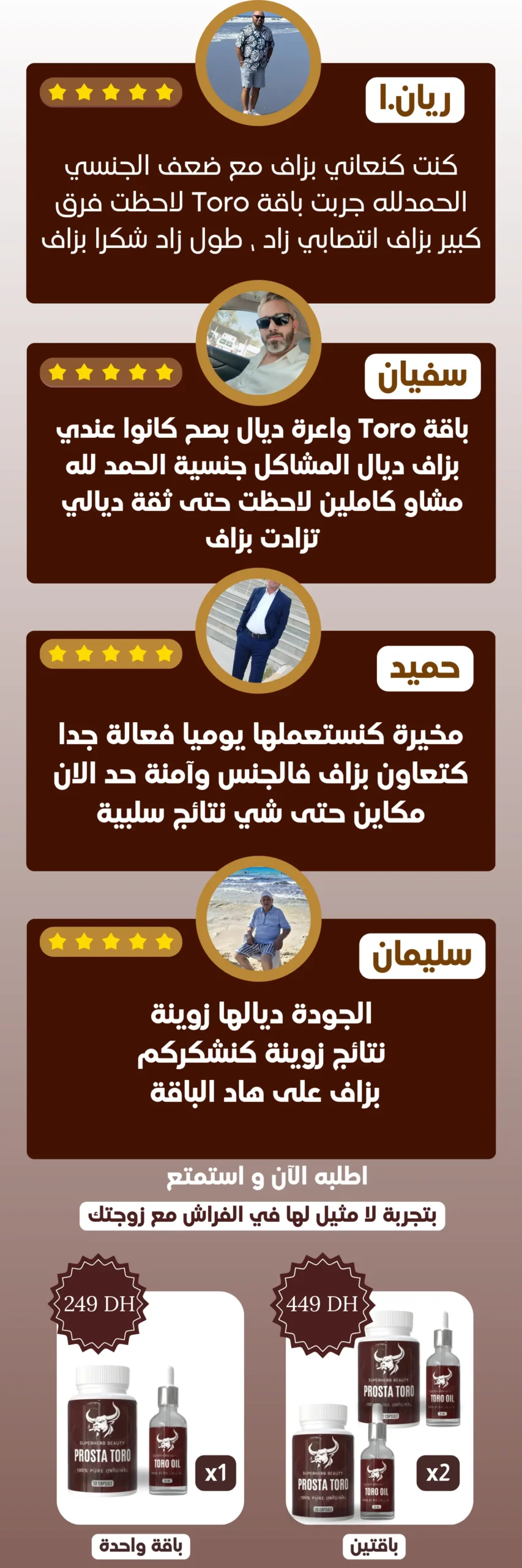 الأمر بسيط جدًا بعد أن تطلب المنتج من خلال ملا الاستمارة سيتصل بك أحد موظفي الشركة ليؤكد معك الطلب، وسنرسل لك المنتج في غضون 24 الى 48 ساعة ( الدفع يكون عند الاستلام ) لدينا فريق توصيل محترف يوصل لك المنتج أينما كنت خلال مدة 24 الى 48 ساعة خدمة التوصيل مجانية بجميع مدن المغرب